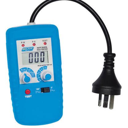 The compact MT325 is lightweight and easy to use and operates on 230V AC circuits while offering high accuracy measurement and good performance. Features include pre-programmed tripping current ranges for speed of use, with direct readout of disconnection time with a resolution of 1ms, neon indication of correct wiring status. Consistent results are obtained with the 0° and 180° phase angle select switch, thus eliminating the need for repeat tests.