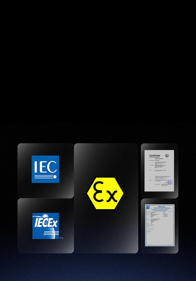 - IECEx: Ex ic IIC T6 Gc, Ex ic IIIC T85°C Dc
