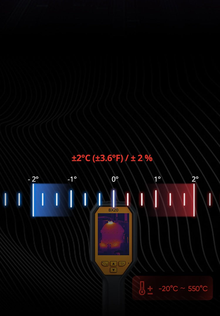 HIKMICRO BX20 is certified to measure temperature in many explosive environments to quickly find invisible faults. It’s equipped with a 256 x 192 resolution thermal detector and 2MP visual camera. The temperature ranges from -20°C to 550°C (-4°F to 1022°F), which meets the most situation. It helps the staff to quickly find the fault according to accurate temperature measurements of high-temperature targets in the environment. Meanwhile, it provides assistance in the decision and ensures safety.