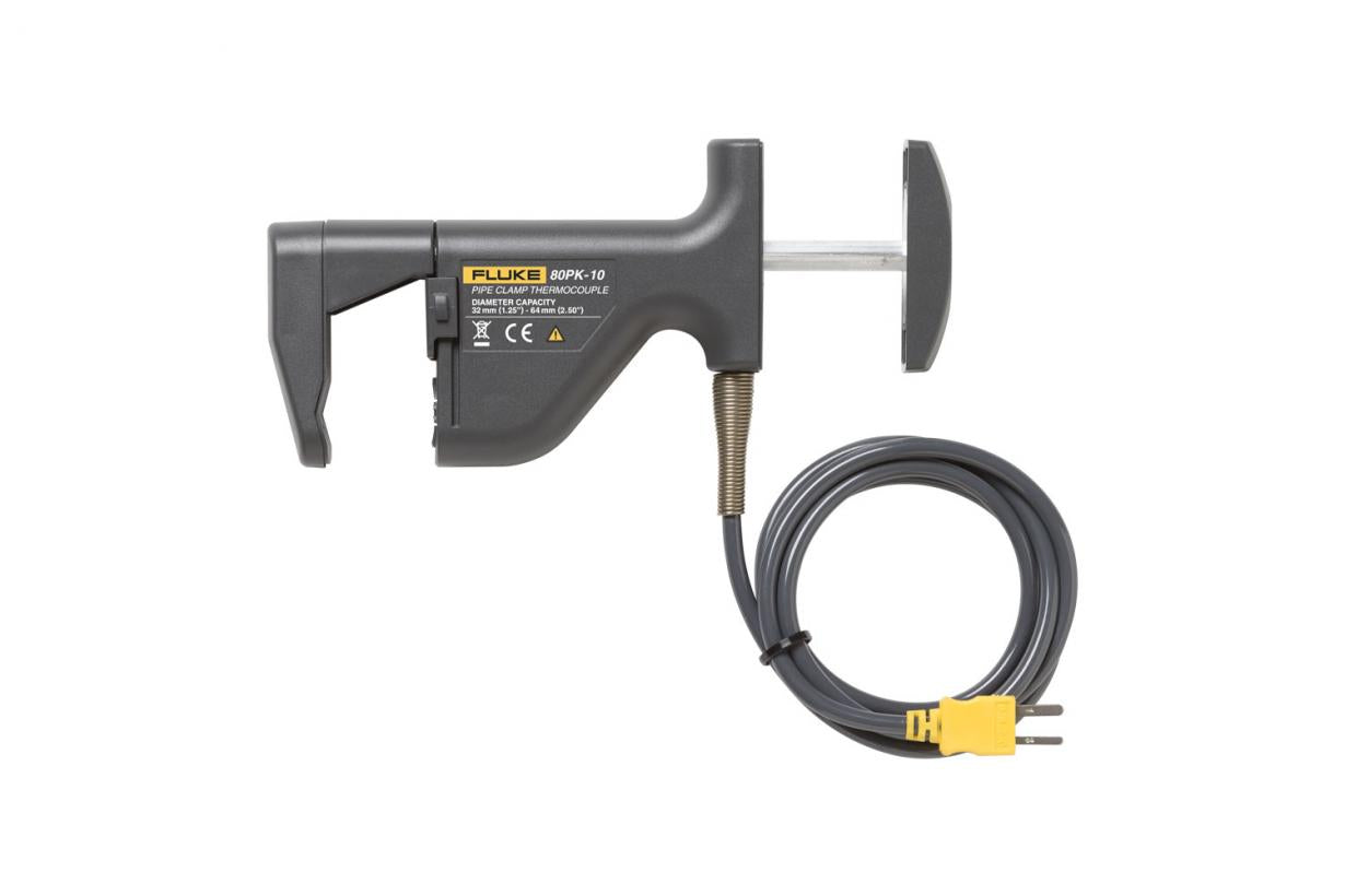 Fluke 80PK-10 Pipe Clamp Temperature Probe (Type K), extra large thermocouple clamps securely to larger pipes for fast temperature and superheat measurement.