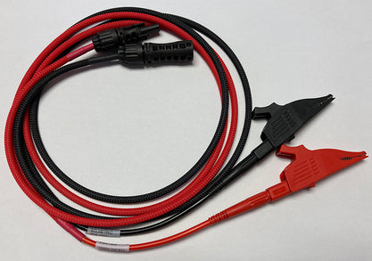 Test Leads for the Solmetric PVA-1000 and PVA-1500. Rated to 1500V DC. Adapts from MC-4 to alligator ("dolphin") clips for convenient connections to bus bars, terminals, etc. Cable length is approximately 5 ft (1.5m). Rugged protective sleeve.