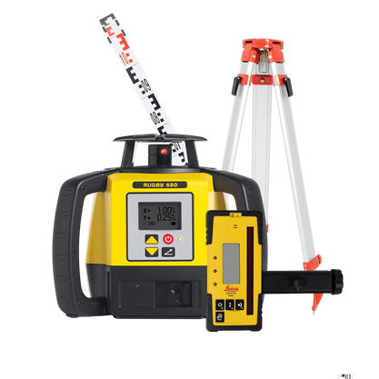 Bring simplicity to construction applications with the Leica Rugby 680 and 670 semi-automatic grade lasers. Designed for contractors who do mostly flat work but occasionally need to create single or dual slopes, Rugby 680 construction lasers are easy to use and effective in all levelling and grading tasks.