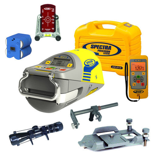 - The Spectra Precision DG613 has advanced functions that make setting up and using it easier and more accurate: Line-Set/Check – allows the user to align the laser to the manhole quickly and easily to set direction. The beam will go up to 100% allowing easy alignment on the first day even in short trenches. Line Scan – provides a quick alignment to the center of the target for the second-day setup. Line Alert – notifies the user if the set-up is disturbed eliminating costly re-work from errors