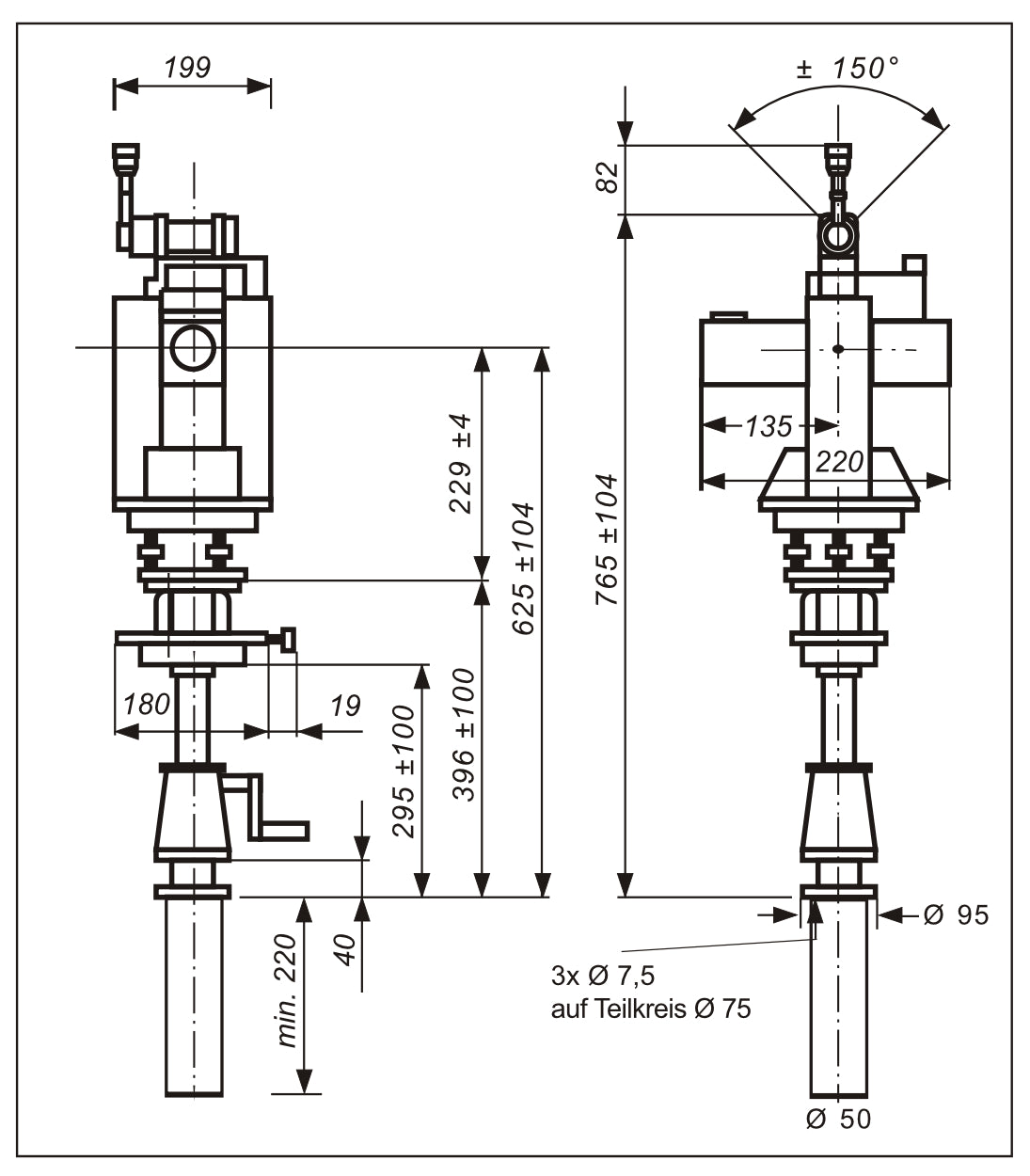 The VM-17 is based on a theodolite with an automatic compensator and horizontal and vertical fine motion screw and clamp. You can carry out remotely the focusing of the telescope with the monitor MF-03. The magnification and focusing of the reticle image is done manually at the camera system. The power is supplied via the monitor.