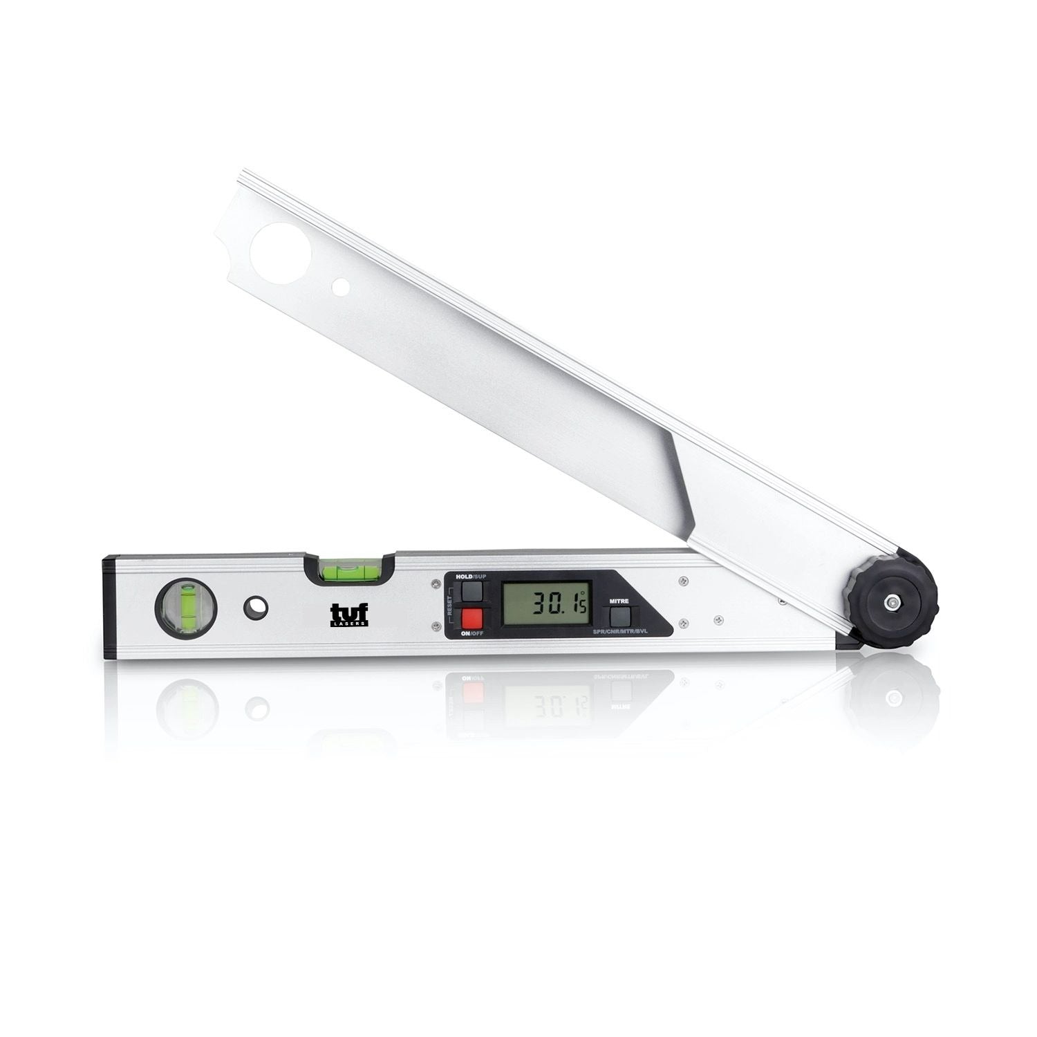 Easy to measure all kinds of angles. Conversion between absolute and relative angles. Display always read upright. Lock moving blade at any angle. Accuracy +-0.1 degree. Measuring range 225 degrees.